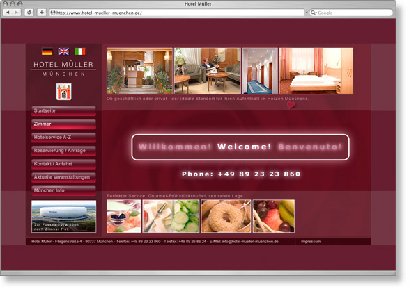 Internetpräsenz; 9 Seiten Kunde: Hotel Müller München Produkt: Hotel Zielgruppe: Consumer, Münchenbesucher